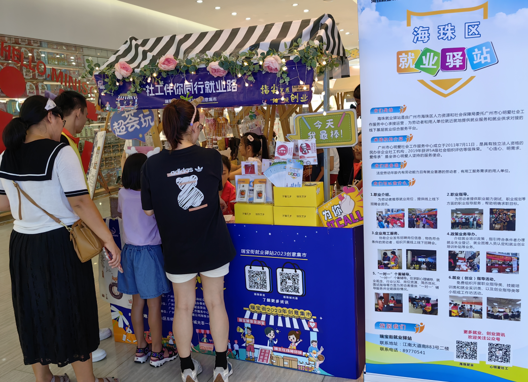 《指尖艺术·摊玩创业》广州海珠瑞宝街首届创意集市热闹开市,热烈反响,热情谢幕,开启线上集市长尾期! 发表日期:2023-10-24 浏览次数:0 8月19日至20日,“指尖艺术·‘摊’玩创业创意集市”活动在我会监事长陈圣辉项目广州市海珠区海珠城光荟举办,10个宝妈亲子摊位分布在商场两处人流集中地,新奇好玩的工艺品尤其吸引带着可爱宝宝的妈妈,看到喜欢的就给孩子试戴......